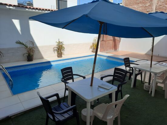 Gemütlich schlendere ich durch den ganz netten Ortskern mit Kneipen und Restaurants. Am Ende der Calle Lima kommt der zentrale Platz mit der Kathedrale. Danach wird es dann öde. Mein Gästehaus ist das absolut letzte Gebäude. Danach hören die Straße und auch der Ort auf.