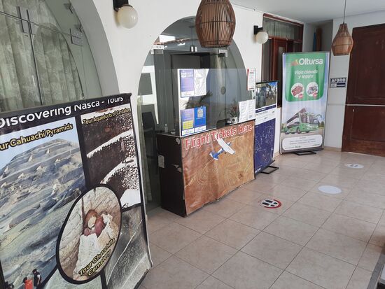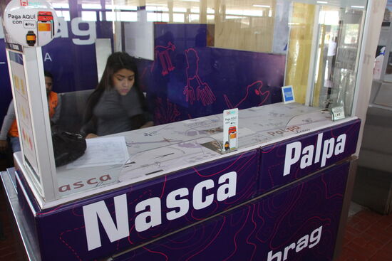 Ich lasse mich nicht zum Gästehaus, sondern nur zu den Busbahnhöfen. Selbst in diesem kleinen Nest gibt es verschiedene, auch wenn sie sich alle in der Nachbarschaft befinden. Erst will ich wieder bei Vica buchen. Aber der Typ meint, es gäbe keine Fahrkarten nach Chincha Alta. Damit hatte ich schon halb gerechnet. Dann nach Ica. Da hat er auch keine. Das finde ich dann etwas merkwürdig. Dort haben wir auch auf dem Weg hierher gehalten. Dann teste ich eben Cruz del Sur. Bei denen bekomme ich zumindest eine Karte nach Ica und muss dann vermutlich zu PeruBus umsteigen. Die Fahrkarte kostet 50 Sol für die mittlere Sitzklasse. Um 09:30 soll ich da sein. Um 10:00 fährt der Bus dann.