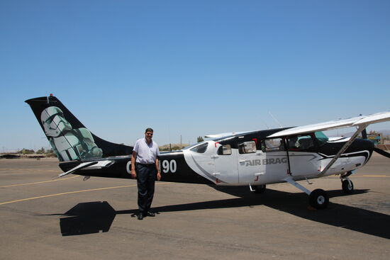 Jetzt geht es schnell. Die Dame von meinem Flugunternehmen scheucht ich durch eine Kontrolle, wo ich meine. Reisepass vorzeigen soll. Der ist im Rucksack. Also durch die Halle gerannt und den Reisepass geholt. Und schon geht es auf das Rollfeld wo uns unser Copilot und Guide in Empfang nimmt. Außer mir sind zwei junge Pärchen dabei, die als Vierergruppe unterwegs sind. Erst werden Fotos mir uns und der Maschine gemacht. Ich frage mich, wie ich da wohl reinpasse, aber das funktioniert überraschend gut. Mein Platz ist genau hinter dem Copiloten. Der rutsche etwas nach vorne und dann funktioniert das. Der Platz neben mir bleibt frei.