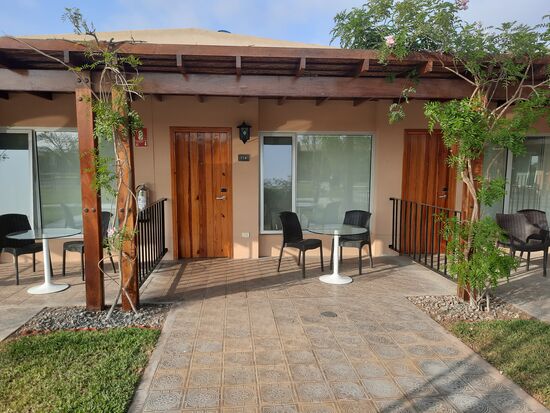 Die nächste Station sollte nach meiner Planung eigentlich Pisco sein. Leider habe ich bei meiner Hotelbuchung nicht aufgepasst und bin bei der Suche nach einem Hotel in Pisco auf Booking einer Hotelempfehlung, dem Casa Andina Standard gefolgt. Nach dem Miniaturplan, der auf den Hotelseiten immer zu finden ist, bin ich davon ausgegangen, dass es etwas abseits vom Plaza de Armas ist, aber nicht auf die Idee gekommen, dass Booking ei. Hotel mit in die Vorschlagsliste einbezieht, das sich in einem Ort mindestens 60 Kilometer entfernt befindet und so bin ich jetzt hier in Chincha Alta, einer Siedlung an einer Straßenkreuzung gelandet. Mehr ist das hier nicht. Dazu befindet sich das Hotel nicht an der Kreuzung selbst, sondern einen gute. Kilometer außerhalb an der Panamericana Sur. Wenigstens ist die Hotelanlage sehr schön mit langgezogenen Bungalowreihen. Dazu kommt einer der größten Pools, die ich seit längerem gesehen habe.