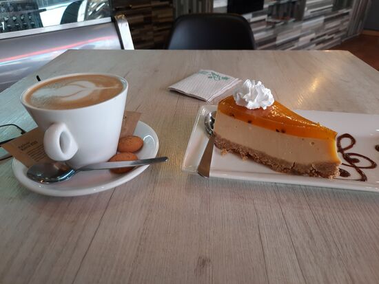 Später gehe ich noch zu. „Mall“ rüber. Einen Lichtblick gibt es nämlich – ein nettes kleines Kaffee, in dem ich mir einen Cappuccino und einen Käsekuchen gönne. Der hat nicht viel mit unserem Käsekuchen zu tun, schmeckt aber lecker.