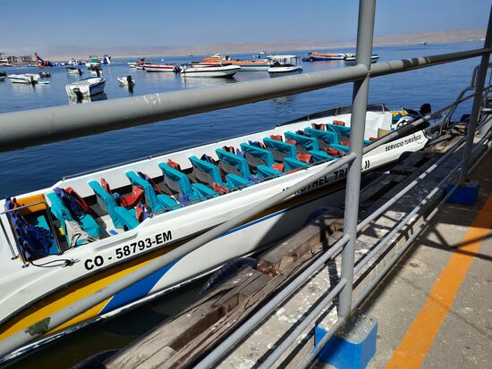An der „Einfallstraße“ reihen sich die Agenturen, bei denen man die Touren buchen kann und schlagen sich um die wenige Kundschaft. Ich werde vom Inhaber meiner Agentur empfangen, dass es wohl Schwierigkeiten mit meiner Abholung gegeben habe wegen dem Verkehr. Von viel Verkehr habe ich unterwegs nichts gemerkt. Dann zahle ich 337 Sol. Dafür möchte ich gerne eine Quittung, die auch bekomme. Anschließend läuft er mit mir die Straße entlang bis zu einem Häuschen auf der anderen Straßenseite, wo er wohl das Ticket für mein Boot holt. Dann übergibt er mich an eine Dame die mich zu den Booten und später auch zurückbringen soll. Bisher bin ich bei dem teuren Preis davon ausgegangen, dass ich zumindest mit einem eigenen Boot unterwegs bin. Weit gefehlt, ich muss mich an einer Schlange anstellen und dann wird ein Boot nach dem anderen vollgemacht. Geschätzt passen in so ein Boot mindestens 30-50 Personen. Wenigstens habe ich das Glück, dass sich in meiner Gruppe alle eher hinten hinsetzen, so dass die erste Reihe neben dem Kapitän zum Schluss noch frei ist. Da gibt es mehr Platz für die Beine. Dann kommt noch ein Guide, der uns unterwegs dann einiges erzählt und auf Tiere aufmerksam macht und meint ich soll mich weiter hinten hinsetzten, weil er den Platz braucht. Ich schüttle den Kopf, deute auf meine Knie und weigere mich aufzustehen. Er versteht, dass ich in den hinteren Reihen zu wenig Platz für meine Beine habe und meint, das geht schon in Ordnung.