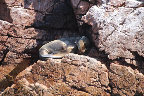 Die Fahrt wird dann recht interessant und wenn wir ein längeres Stück fahren auch ganz schön ruppig. Ein weiterer Vorteil an meinem vorderen Sitzplatz ist, dass ich gut aufstehen und über die Reling fotografieren kann, solange die Fahrt nicht zu wild wird. Die Landschaft ist beeindruckend. Das gilt auch für die Vogelkolonien. Nur für die Seelöwen habe ich wohl die falsche Zeit erwischt. Angeblich müssen im Juni, wenn sie Junge bekommen, hier hunderte zu sehen sein. Jetzt gerade ist das Wasser wohl zu kalt oder warm und es gibt nicht genug Futter. Deshalb sehen wir nur 4 oder 5 in den Felsen versteckt liegen.