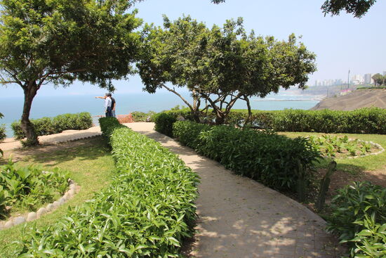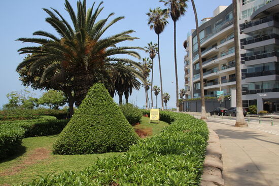 Wie erfreulich, dass es heute doch noch einmal richtig schönes Wetter gibt. Nach dem Frühstück nehme ich den Bus 301 nach Barranco. Nach den Beschreibungen bin ich schon gespannt. Der Ortsteil muss besonders nett sein. Unterwegs frage ich den Busfahrer und der deutet nach hinten. Ich habe also die Haltestelle verpasst. Macht aber nichts, weil er umgehend anhält und mich raus lässt. So muss ich nur über die Kreuzung zurücklaufen. Da habe ich noch einmal Glück gehabt, einen so netten Busfahrer erwischt zu haben. Allerdings stellt sich dann heraus, dass ich doch noch ein ganzes Stück laufen muss, um zu dem eigentlichen Viertel zu kommen. Dafür geht der Weg aber durch ein angenehmes gehobenes Wohnviertel immer am Meer entlang. Zwischen den Häusern kommen immer wieder einmal kleine Parkanlagen mit schönem Blick auf das Meer. Vom eigentlichen Ortskern von Barranco bin ich dann doch enttäuscht. Da hätte ich mir mehr erwartet. So schaue ich mich vielleicht eine halbe Stunde um und mache mich auf den Rückweg.