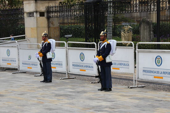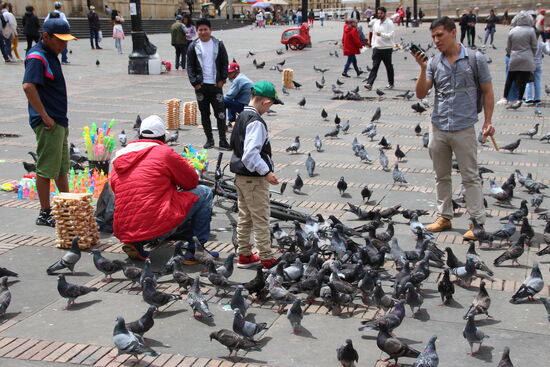 Über die Fußgängerzone spaziere ich zum Museo del Oro oder besser dem Platz davor. Das Museum selbst sehe ich ämlich wieder nicht. Ich bin gestern auch schon vorbeigelaufen. Den grauen Betonkaste im Hintergrund erkenne ich erst nachdem ich noch einmal im Handbuch nachgelesen habe und kurz davorstehe. Dafür, dass es sich um eines der bedeutendsten Museen Südamerikas handelt, ist es echt unauffällig.