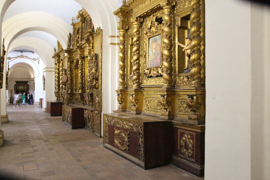 Am unteren Ende des Platzes, vorbei an der Statue von Simon Bolivar durch Unmengen an Tauben geht es in die Cra 9 zur Iglesia de Santa Clara, ein altes Kloster, das heute zum Museum umfunktioniert ist. Das Museum ist zwar nur klein, aber so prächtig, dass sich ein Besuch trotzdem lohnt.