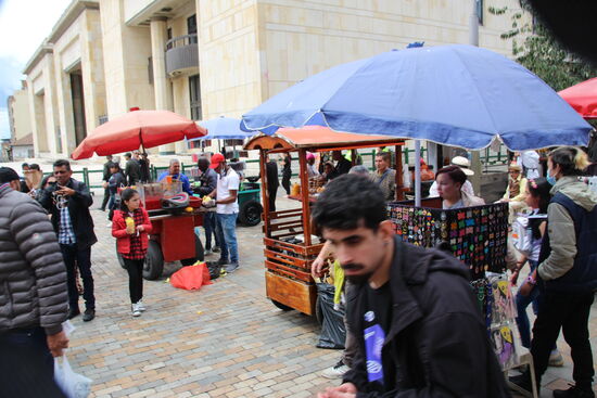 Von hier bin ich durch den Park vor dem Präsidentenpalast. Hier ist erst einmal mein Rucksack kotrolliert worden. Dann ging es die Calle 10 hoch, eine der repräsentativsten Gassen aus dem Viertel. Der erste Block vom Plaza Bolivar aus wird belagert von Ständen, die Touristentrödel verkaufe. Beinahe hätte ich eine. Magneten gekauft, aber es dann doch erst noch gelassen.