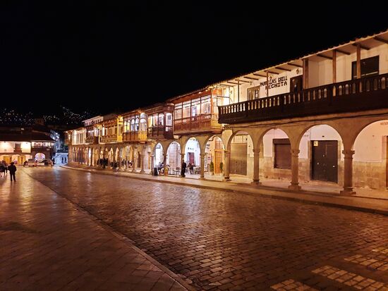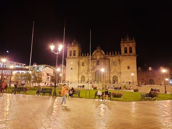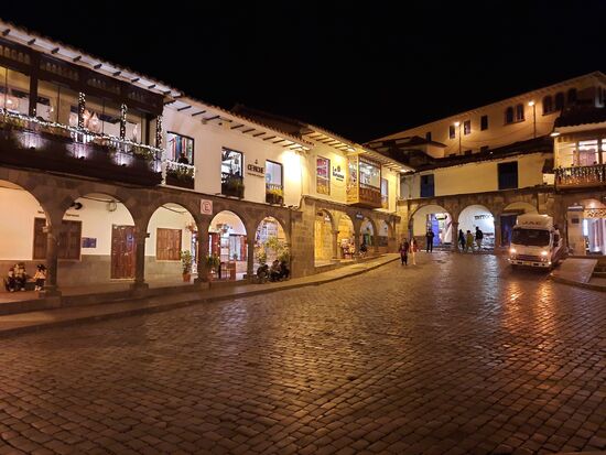 Erst einmal auspacken, dann ein erster kleiner Erkundungsrundgang. Bei der nächtlichen Beleuchtung wirkt der Plaza de Armas einfach wunderschön.