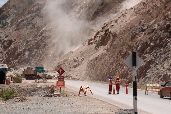 Leider spricht er nur wenige Wörter englisch. Er versucht aber trotzdem, mir unterwegs das ei e oder andere zu zeigen. Auf einmal geht es nicht mehr weiter. Vor uns war ein Erdrutsch und Arbeiter sind dabei, die Straße freizuräumen. Er meint 10 oder 20 Minuten, holt sich von den bereits anwesenden Straßenverkäufern etwas zu essen und steigt aus. Ich steige auch aus, um mir die Beine zu vertreten. Als eine halbe Stunde vergangen ist, wird mein Fahrer etwas nervös. Mir macht das nichts. Ich habe Zeit. Nach einer knappen Stunde geht es dann doch weiter und etwa 45 Minuten später sind wir angekommen.