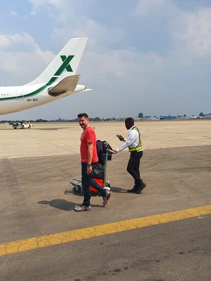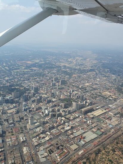 Schlussendlich sind wir mit wenig Verspätung doch noch in Richtung Harare gestartet. Während dem Flug gab ein freundlicher Mitarbeiter mit familiärem Hintergrund ein recht gutes Essen und einen vorzüglichen Wein an uns ab. Er war sogar so freundlich, dass er uns noch einen zweiten Wein anbot, als er bei allen anderen nur noch abgeräumt hat. Aber wir wollten es ja für einmal nicht übertreiben und blieben stand, bzw. sitzhaft.
