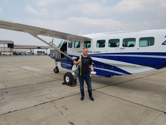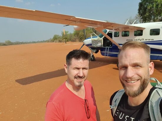 Nach 80 Minuten waren wir am Ziel und wurden direkt am Flugzeug abgeholt um zu unserem Weiterflug in den Busch geleitet zu werden.