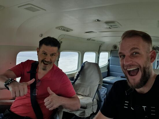 Natürlich waren wir auf unserem Flug dorhin die einzigen Passagiere. Das nennt sich Service!