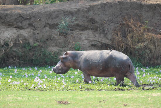 Gleich zu Beginn dachte sich ein Nilpferd jedoch sich sein Recht des Weges zu nehmen, weshalb wir einen kurzen Stop einlegen mussten, damit das gute Tier von rechts nach links kreuzen konnte.