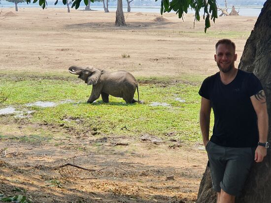 Letztendlich haben wir aber auch das geschafft und konnten den Rest des Weges zum Camp unter die Paddel nehmen, nur hier und da von einem in Wasser springenden Krokodil von klein bis "bleib mir bloss weg du Monster" , einer auf einer Insel grasenden Elefantenherde oder dem zwischenzeitlichen sich über Sand schieben, weil wir drei zu fett für ein Kanu sind, unterbrochen.
