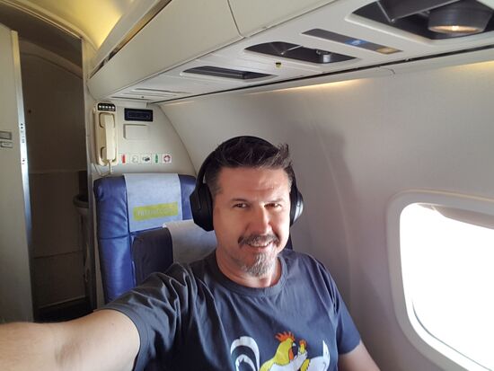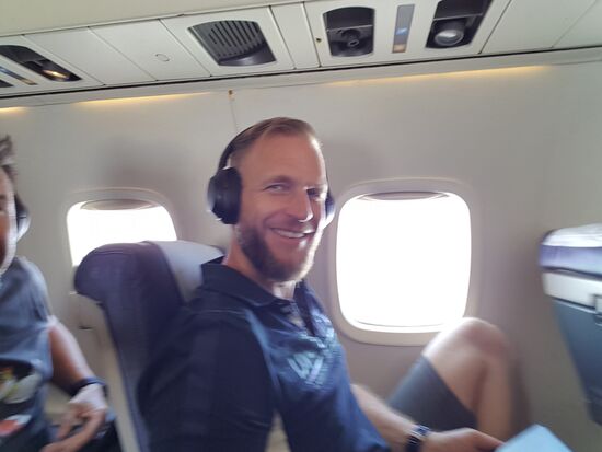 An Bord der sehr kleinen Maschine mit unter 50 Sitzplätzen war es eng... alle Gepäckablagen voll und kaum Beinfreiheit, aber zum Glück war der letzte Sitz hinter mir frei, so wurde das Problem schnell behoben.