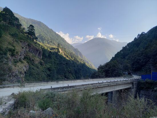 In Serpentinen geht es auf schmalen und unwegsamen Straßen rauf und runter. Der Abgrund ist teils gefährlich nah. Dann erzählt mir Passang, daß Amritas Mutter hier bei einem Busunfall ums Leben kam. Amrita ist ein Mädchen das seit dem im COU lebt. Diese Geschichte beunruhigt mich ein wenig und stimmt traurig