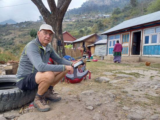 Heute geht es los, Trekking auf dem Tamang Heritage Trail. Wir starten 8:30Uhr in Chilime auf ca. 1700m. Unser Ziel Tatopani liegt auf 2600m. Es geht über weite Strecken stramm aufwärts. Morgens ist es noch kalt. Aber immerhin haben wir die Nacht nicht gefroren.