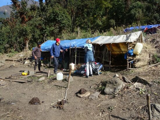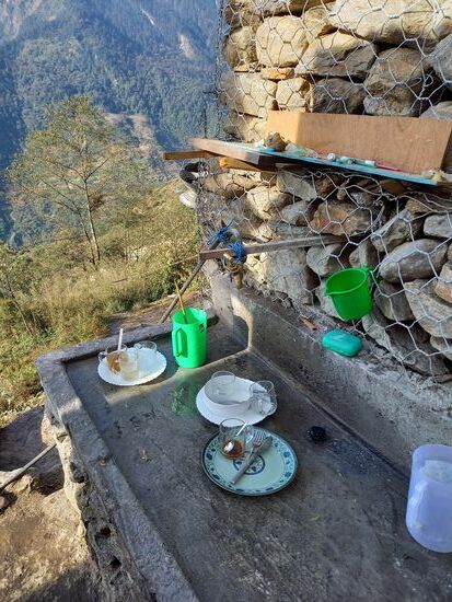 Der Abend klingt bei Dal Bhat und Tee am warmen Ofen aus. Doch dann heißt es in den Schlafsack kriechen und die Decke über beide Ohren ziehen. Die Betten sind hart. Es gibt kein Lattenrost. Das Bett ist ein Brettergestell auf dem eine dünne Schaumstoffmatratze liegt. Bei der Kälte behalten wir auch fast unsere komplette Kleidung an, einschließlich der Mütze. Beim Einschlafen denke ich an die Familie von meinem Patenkind Bhutti und wie sich dort eine Nacht in Kälte wohl anfühlt .....