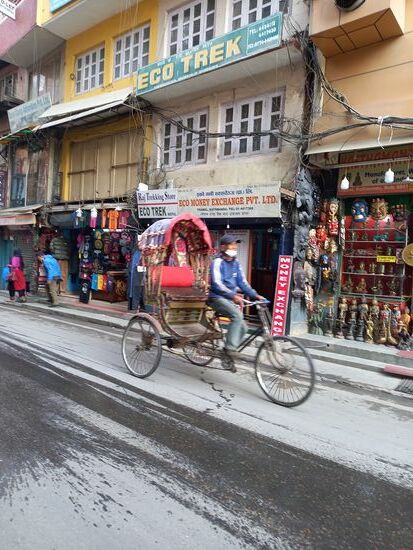 Heute machen wir uns mit Tsering auf den Weg nach Thamel, ein Stadtteil von Kathmandu an dem fast kein Tourist vorbei kommt. Hier reiht sich ein Hotel, Cafe und Souvenir Laden an den anderen. Natürlich gibt es auch jede Menge Trekking Zubehör im Angebot. Wir sind allerdings auf der Suche nach Strickware.