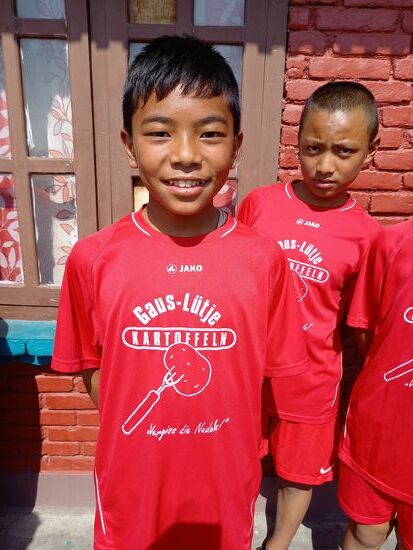 Zum Mittagessen bekommen wir das traditionelle Dal Bhat serviert. Es besteht aus Reis und verschiedenen Beilagen. Wir bekommen Spinat, Kartoffeln und Bohnen. Dazu gibt es Joghurt. Die Kinder freuen sich über die Bananen als Nachtisch.