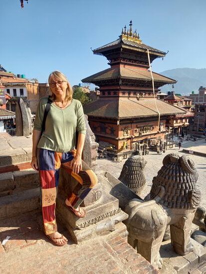Ich sehe die Stadt nun zum dritten Mal und bin sehr gespannt, wie es mit dem Wiederaufbau voran gekommen ist. Denn nach dem Erdbeben 2015 war vieles zerstört. Die Stadt gilt als die Kulturhauptstadt des Landes. Sie ist eine der drei ehemaligen Königsstädte. Neben Kathmandu und Lalipur ist sie die Kleinste. Der Reichtum der Stadt ist in ihrer Lage begründet. Sie liegt an einer ehemaligen Handelsroute nach Tibet. Es gibt unzählige Tempel und Häuser mit aufwendigen Holzschnitzereien. Bhaktapur wird auch als lebendiges Museum beschrieben, indem man die Newari Kultur hautnah erleben kann. Sie liegt auf einer Höhe von 1400m. Die Bevölkerung besteht im wesentlichen aus Hinduisten und Buddhisten. Wir werden zwei Tage in dieser einzigartigen Stadt verbringen. Wir haben uns im Guesthouse Café Beyond eingemietet. Unser Zimmer bietet einen super schönen Blick auf die Berge des Himalaya.