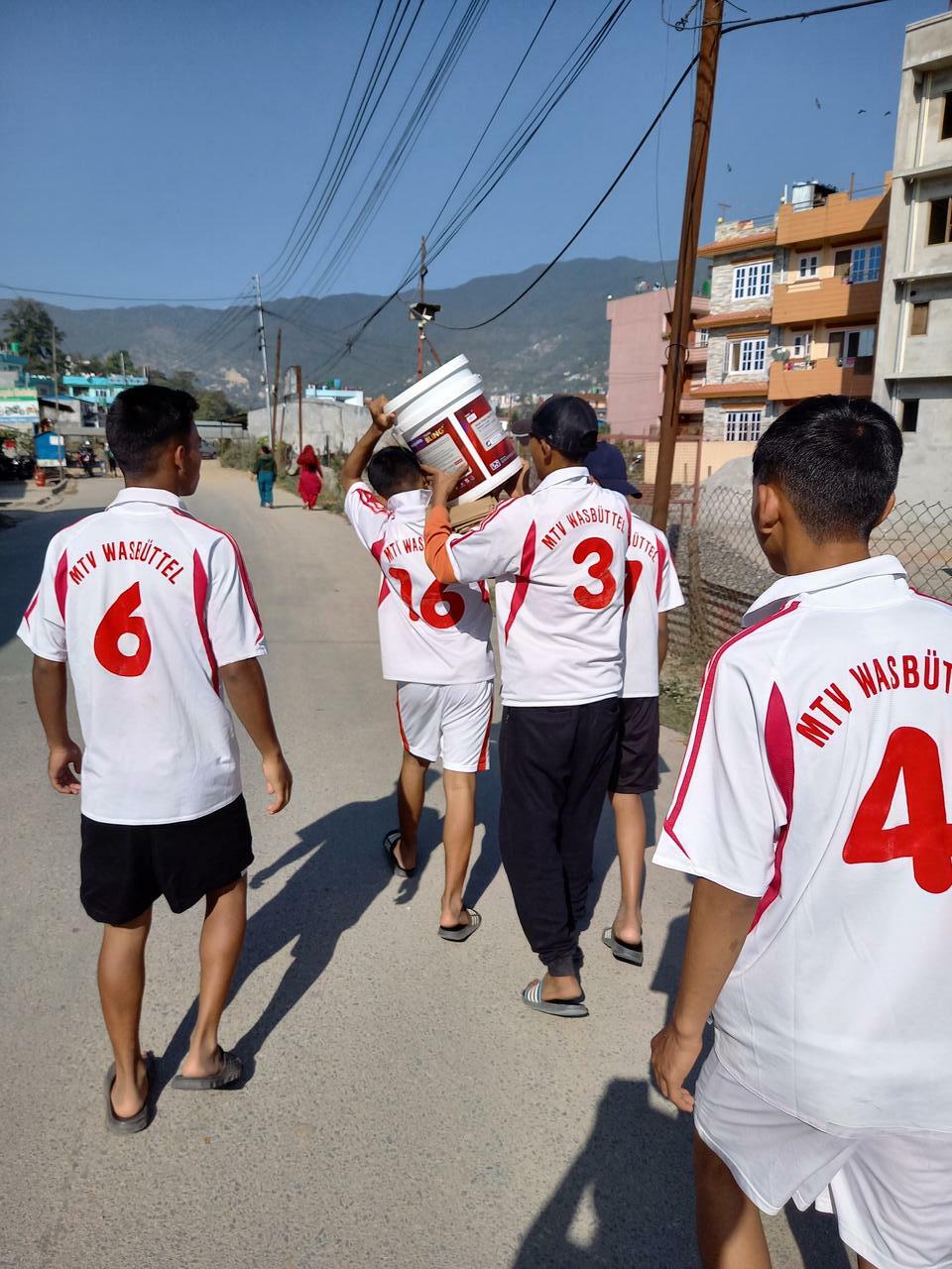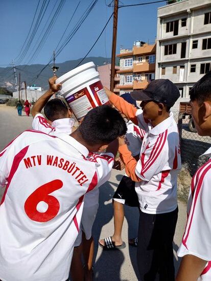 Samstag ist ebenfalls der Tag an dem die Wäsche gewaschen wird. Dabei helfen die Größeren den Kleinen und auch Mingma und Dei unterstützen.