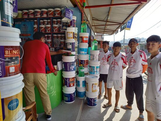 Nachmittags gibt es eine weitere Überraschung für die Kinder. Wir kaufen Farbe, damit die Zimmer der Kinder neu gestrichen werden können. Die Jungen dürfen bei der Farbauswahl mitbestimmen, aber damit sind sie sichtbar überfordert - wir wählen ein Grün.