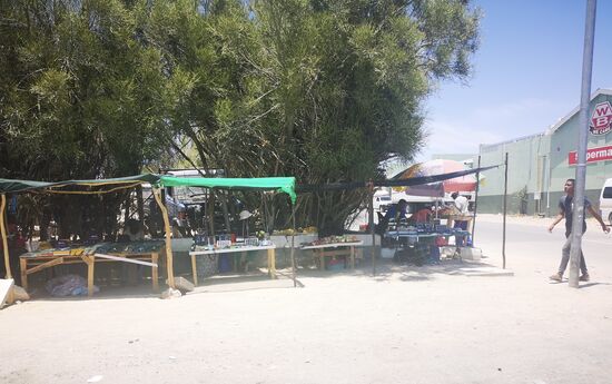 Auf halber Strecke, in Usakos, fahren wir direkt durch pulsierendes Markttreiben und an modernen Tankstellen und Raststätten vorbei. Die Rastplätze außerhalb der Ortschaften muten eher rustikal an und werden aufgrund fehlenden Schattens offenbar wenig genutzt.