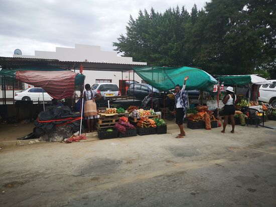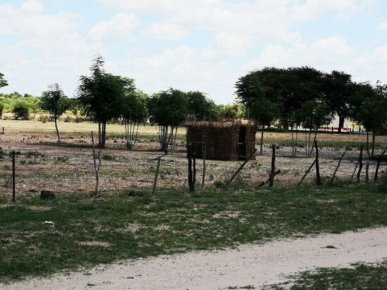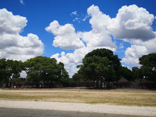 Je weiter wir von Grootfontein nach Nordosten fahren, desto grüner wird nicht nur die Landschaft, sie wird auch bewohnter von Mensch wie von Tier. Zumeist sehen wir zuerst die Kuh- und Ziegenherden, die links und rechts der Straße grasen, dann erst entdecken wir die runden Strohhütten der Dorfbewohner, die hinter den hohen Zäunen aus aneinander gereihten Stöcken kaum zu sehen sind. Unter den hohen Bäumen im Schatten sitzen die Anwohner, Frauen bieten Apfelsinen an, Kinder laufen kreuz und quer über die Straße. Allein die kleinen Shops und Schulen sind aus Stein.