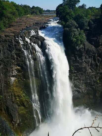 Die Victoriafälle sind zwar nicht die weltweit höchsten, aber mit 1708 Meter die breitesten Fälle. Sie verfügen über die größte Wasserfläche, ihre Höhe beträgt 108 Meter. Damit überragen sie zumindest die Niagarafälle in den Staaten.