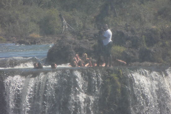 Von weitem beobachteten wir auf sambischer Seite das ausgelassene Treiben im "Devils Pool" und waren angesichts der tollkühnen Aktivitäten sprachlos.