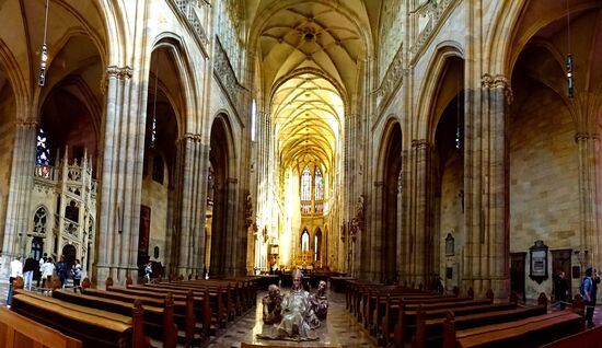 .....dem 60m langen Vladislavsaal mit der 13m hohen Gewölbedecke. Im Mittelalter fanden dort Bankette und Ritterspiele statt.