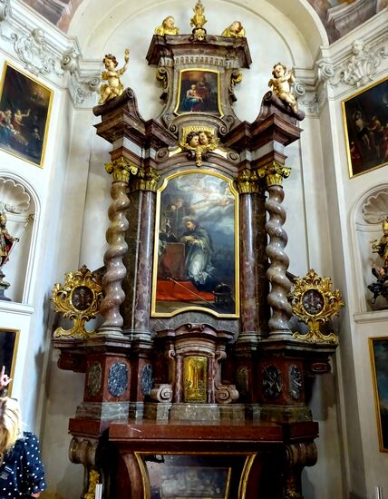Am Platz auch die Teynkirche, der gotische Bau entstand im 14. Jh. Auffallend die beiden 80m hohen Türme, die von je 8 kleineren Spitzen umrandet sind