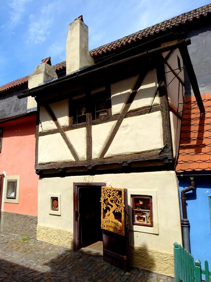 16. Jh. Darin wohnten einst Burgwächter und  Handwerker, in diesem, mit der Nr. 22, zeitweise sogar Franz Kafka