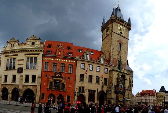 Danach sind wir Richtung Rathaus gebummelt....unterwegs Markt, viele kleine und grosse Shops, und dann öffnete sich die schmale Gasse zum Altstädter Rathaus hin......nur Menschen, die vor dem Rathausturm mit der astronomischen Uhr aus dem 15. Jh. darauf warten, dass der Sensenmann zu jeder vollen Stunde am Seil des Glockenspiels zieht und sich die 12 Apostel in Bewegung setzen.....haben wir nicht drauf gewartet....war uns zu voll.