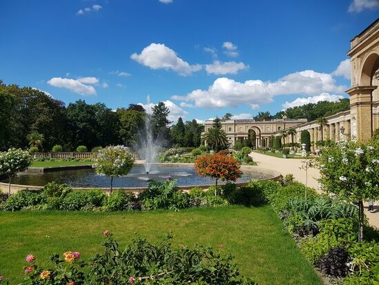Wir wollen die Nachtfähre von Rostock nach Trelleborg benutzen. Auf der Fahrt nach Rostock kündigt sich auf der A10 ein Stau bei Potsdam an. Wir entscheiden uns spontan für den kleinen Umweg durch Potsdam und legen eine Rast am Schloss Sanssouci ein. Am Schloss selbst ist viel Betrieb, aber zur anderen Seite hin wird es ruhiger. Wir gehen an der Orangerie vorbei zum Botanischen Garten, der Rückweg führt uns durch den Sizilianischen Garten.
