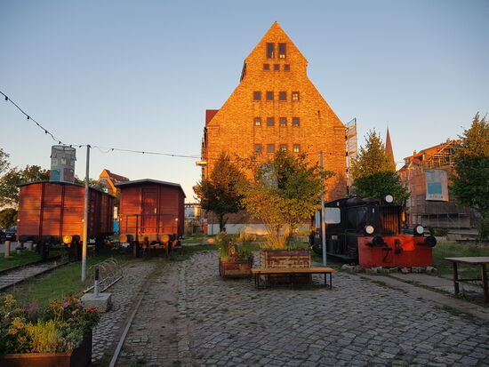 In Rostock haben wir eine Übernachtung eingeplant im B&B Hotel am Gaffelschonerweg auf der Holzhalbinsel. Das Quartier ist zentral gelegen und trotzdem recht ruhig. Ein Stadtrundgang führt uns zum Markt. Nach einer Einkehr beim Lila Bäcker bummeln wir durch die Kröpeliner Straße, wo sich auch die Stadtinformation befindet. Am Kröpeliner Tor kehren wir um und gehen durch die Lange Straße zurück. Bei der Marienkirche wenden wir uns zum Hafen und gelangen am Ufer zurück zur Holzhalbinsel.