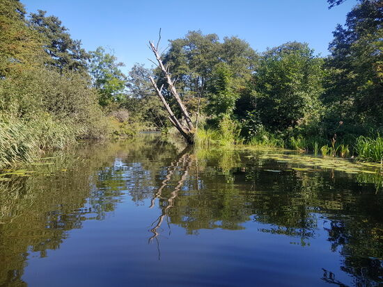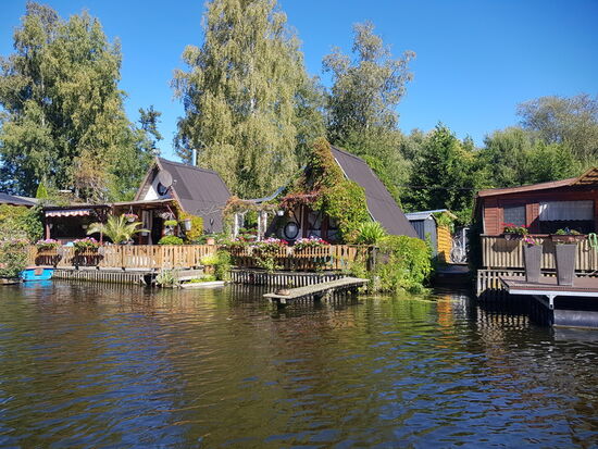 Das sehr sommerliche Wetter wollen wir noch zu einer Paddelrunde auf der Warnow nutzen. An der Mühlendammscheuse pumpen wir unsere SUP-Boards auf und paddeln die Warnow aufwärts bis Kessin. Hier begleiten uns schöne Gartenhäuschen und teils unberührte Natur.