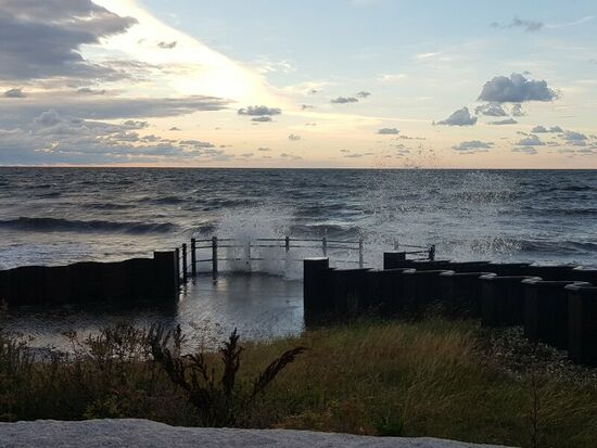 Die Nacht auf der Fähre ist schnell vorbei, die Ankunft ist schon gegen 6:00 Uhr. Von Trelleborg aus fahren wir an der Küste entlang in Richtung Osten. Einen ersten Stopp legen wir in Smygehuk ein, das ist der südlichste Punkt Schwedens. Hier herrscht heute eine starke Brandung, auf der großen Fähre war davon glücklicherweise nicht viel zu merken.