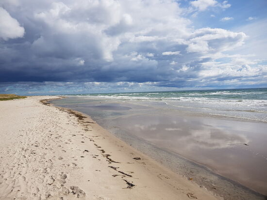 Bei der Weiterfahrt halten wir in Löderup an, hier gibt es einen schönen, aber nicht sehr langen Sandstrand. Etwas weiter in Sandhammaren soll es nun wirklich den schönsten Strand Schwedens geben. Wenn man über den Sand geht, macht der hier ziemlich laute singende oder quietschende Geräusche. Das soll ein Indiz für die "Sandqualität" sein.