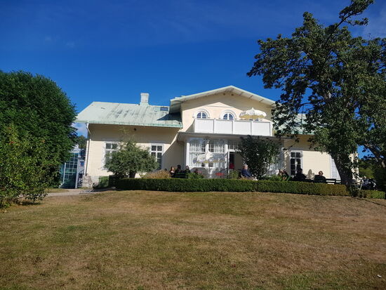 Kaffee und Kuchen gibt es gleich nebenan auf der schönen Terasse vom Café Mandeltårtan. Das ist gleich das schönste Cafe auf unserer Schwedenreise, nicht nur im Hinblick auf die kulinarischen Erlebnisse, sondern auch mit der sehr vielfältigen und liebevollen Gestaltung der Räume. Zurück nach Ronneby-Ekenäs gehen wir einen anderen Weg durch den Wald, am Trollsee und am japanischen Garten vorbei.