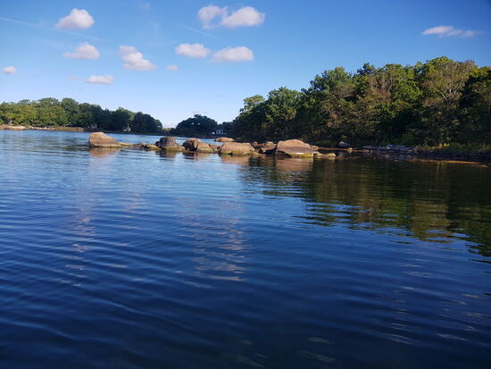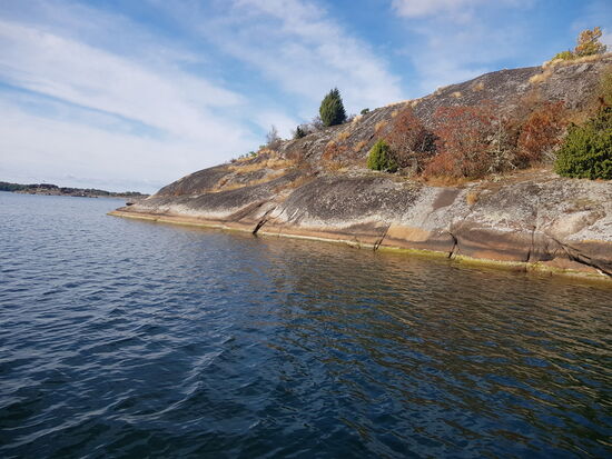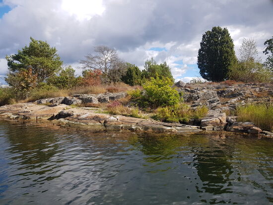 Heute wollen wir mal eine Paddelrunde etwas weiter westlich unternehmen. Dazu fahren wir über Saxemara zum Hafen Järnavik. Die Schärenfelsen sind hier höher als vor Ronneby. Unsere Runde wird diesmal nicht so lang, denn es kommen ordentlich Wind und Wellen auf.