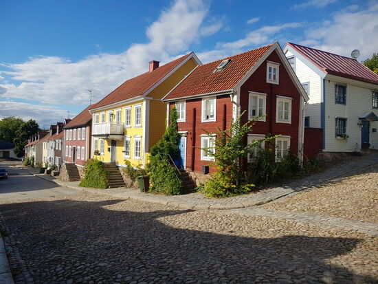 Da es erst gegen Mittag ist, fahren wir weiter in den nächsten größeren Ort Karlshamn. Wir kehren dort in der gut besuchten Konditori Christin ein und bummeln auf der Drottninggatan zur Kirche, zum Hafen und weiter zum Rosengarten.