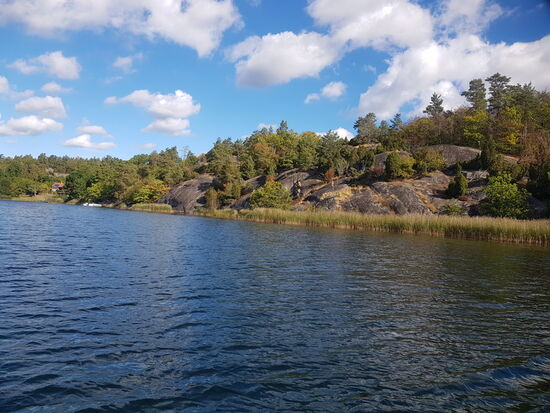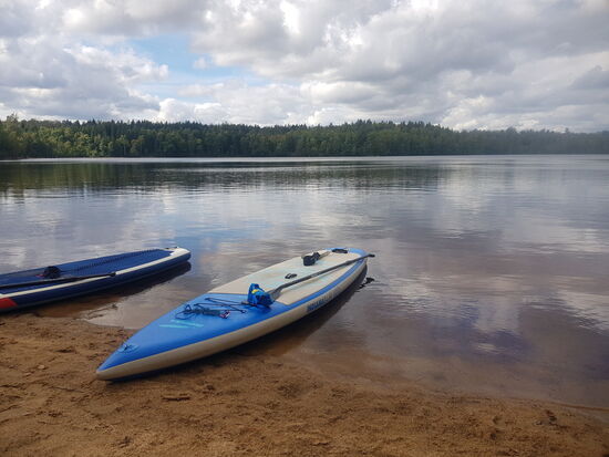 Wir wollen uns auch mal das "Hinterland" ansehen und fahren am nächsten Morgen landeinwärts zum See Listersjön. Eine Paddelrunde führt uns dort zu einer schönen Badebucht, an anderen Stellen gibt es aber leider viel mehr Wind und Wellen als auf dem Bild.