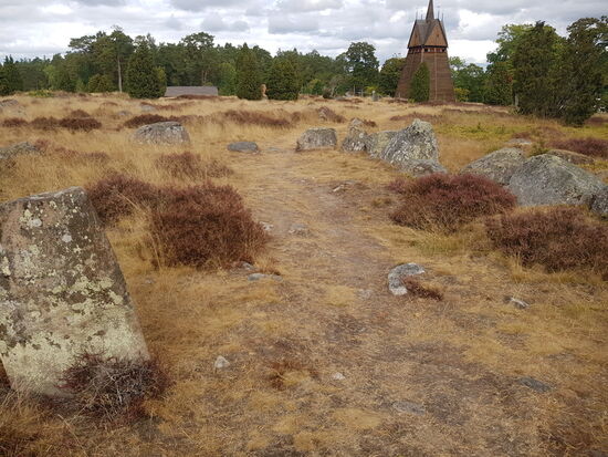 Auf dem Rückweg halten wir am Wikinger-Gräberfeld Hjortsberga neben einer kleinen Holzkirche. Gleich im Nachbarort Johannishus gibt es den Gartenmarkt "Plant Riket". Der ist viel liebevoller gestaltet und dekoriert als die übrigen Gartenmärkte im Lande.