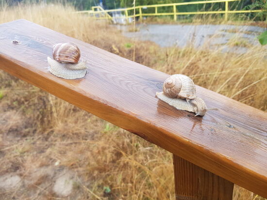 Am nächsten Tag regnet es mal ausnahmsweise. Wir fahren nach Kallinge zum Fabrikverkauf "Ronneby Bruk" (Töpfe und Pfannen). Dort beginnt auch ein Wanderweg zur Djupaforsklyftan (Djupafors-Schlucht) am Fluß Ronnebyan entlang. Wir gehen wetterbedingt nicht den ganzen Weg, nur die Schnecken scheinen den Regen zu genießen. In Ronneby statten wir noch Sallys Gebrauchtwarenladen einen Besuch ab, dann gibt es Kaffee und Kuchen wieder im Cafe Mandeltartan (diesmal drinnen).