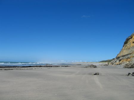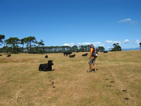 Weiter gings in den noerdlichsten Zipfel der Suedinsel, dem ziemlich exponierten Farewell Spit in der Golden Bay gelegen. Am Cape Farewell gabs riesige (und voll windige) Straende zu bestaunen und kleine Wanderungen durch Farmland, mitten durch Kuehe und Schafe.