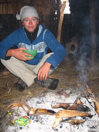 Es wurde empfindlich kalt und wir waermten uns bei warmem Tee und einem kleinen Feuer, dass aber mehr rauchte als brannte.