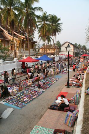 Abends verwandelt sich die Sisavangvong Road in ein Einkaufsmekka. Viele Laoten aus dem Norden des Landes verkaufen ihre Erzeugnisse am gutfrequentierten Nachtmarkt hier.