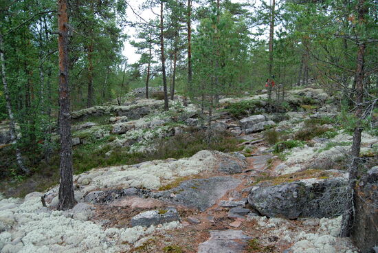 Ca. 20 km östlich von Raumo liegt das Gräberfeld aus der Bronzezeit Sammallahdenmäki. Auch dieses ist ein UNESCO Welterbe. Wir wanderten zwischen den Steinsetzungen herum. Zwischen den Gräbern standen in lichtem Abstand Bäume, und der Boden war u.a. mit Lingon – Preiselbeerbüschen bewachsen. Zu Beginn des Bronzezeitalters (1500-500 v.u.Z.) wanderten neue Volksgruppen aus Skandinavien ein und brachten eine neue Kultur mit an die Westküste Finlands. Zu der Zeit war es wärmer als heute. Außerdem lag das Gräberfeld direkt an der Küste. Vorgelagert war ein Schärengarten. Raumo hätte zu der Zeit im Wasser gelegen. Heute noch beträgt die Landhebung hier ca. 55 cm/100 Jahren.